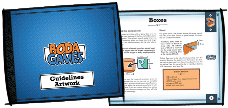 If cards have 3mm of bleed, then what were the margins for punchboards again? It can be confusing and time consuming! With the Boda Games artwork guidelines, you can check for every type of component what is required to get it ready for printing.
