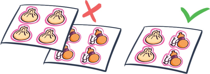 One space-saving alternative is to create shared dielines. There are some limitations to what kind of shapes can use shared dielines. Straight lines, square shapes, rectangular shapes and such work well with shared dielines. But complicated shapes (rounded, very pointed) are usually not very suitable. If you are considering using shared dielines, please consult your account manager about the feasibility.